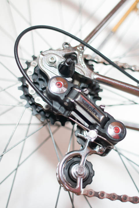 Die Bremsen habe den schönen Namen Maffac Racer. Die Laufräder sind ebenfalls von Maillard mit hochflansch Naben und Stahlspeichen.