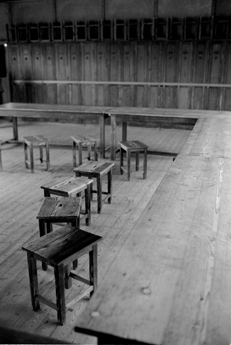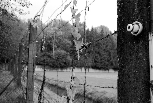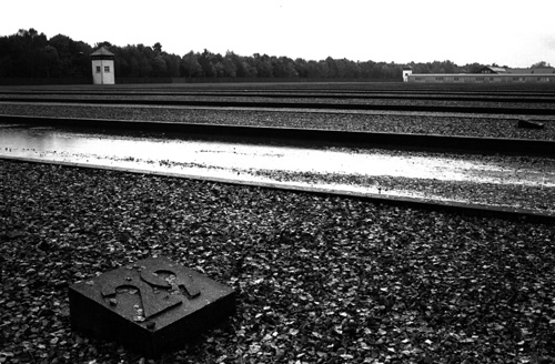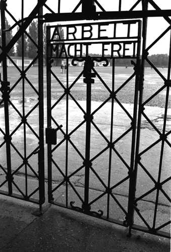 Am ursprünglichen Eingang zum KZ mache ich die ersten Fotos von dem schmiedeeisernen Eingangstor: "Arbeit macht frei". Ein Japaner neben mir filmt die gleiche Einstellung und spricht Notizen auf das Band - auf japanisch. Auf dem Weg zum Krematorium mache ich weitere Bilder und kämpfe dabei mit meinem Regenschirm. Es fällt mir schwer, den mir entgegenkommenden Amerikanern ins Gesicht zu schauen. Ob sie mir wohl ansehen, dass ich ein Deutscher bin? Was geht wohl in ihnen vor?