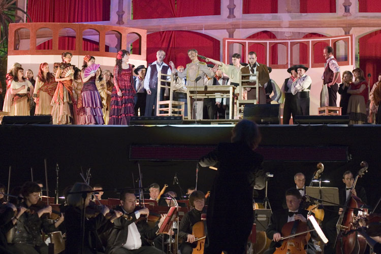 Samstag, 18.06.2005, Rohrdorf: Im Steinbruch des Zementwerks wurde die Oper "Carmen" von Georges Bizet aufgeführt. 4200 Besuchern bot sich vor einer eindrucksvollen Kulisse eine Aufführung vom Chor und Orchester "La Passione".