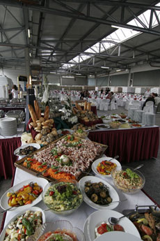 Für die VIPs wurde in der Verladehalle des Zementwerks ein Buffet errichtet. Zu Wein, Bier und Prosecco wurde eine große Anzahl an raffinierten Gerichten, Vorspeisen und Desserts serviert.